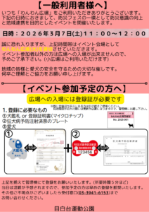 ※小雨決行、雨天順延。延期の場合3/21(土)10:00~12:00に短縮して実施